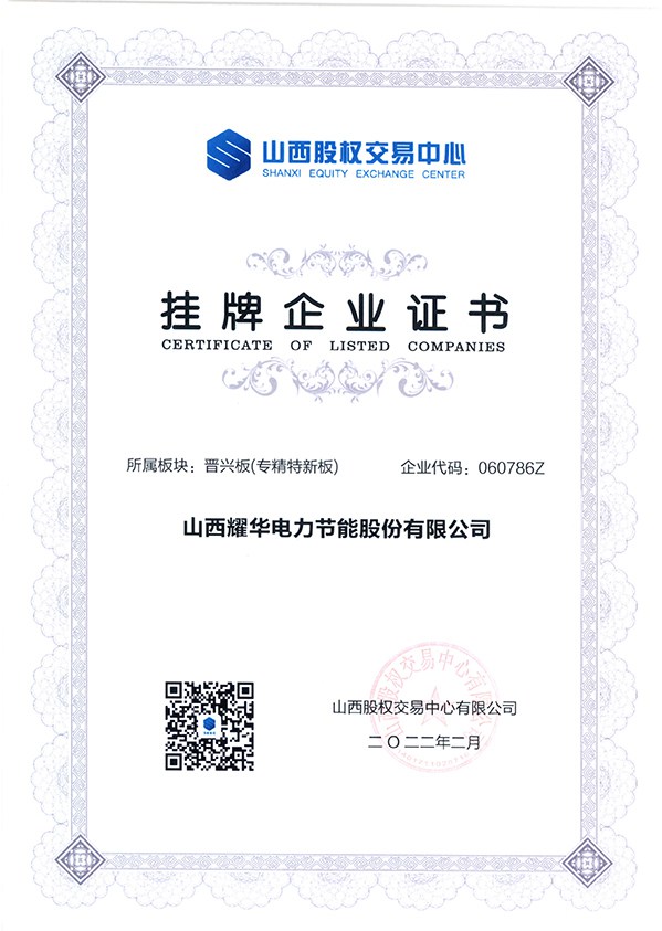 山西耀華電力節(jié)能股份有限公司是國內第一家提出谷期電集中儲能蓄能的高新技術企業,其主營業務:電力市場購售電交易運營、電力設施安裝檢測運維、 低谷電采暖設備的研發(fā)、生產、安裝、銷售及運行服務于一體。公司成立于1996年,落座于山西省太原市,現有股權代碼在晉興板上市的專精特新企業,中國建設科技自主創新優(yōu)勢企業,山西省節(jié)能協會理事單位,擁有自主知識產權,獲得國家多項專利,參編了電采暖國家標準(JC/T60008-2021)和主編了山西省地方標準(DBJ04/T291-2012)。擁有國家發(fā)明專利11項,軟件著作權6項。其中“大數據遠程集中監(jiān)控運維服務平臺”早在2019年就在河北、天津、山西等多個煤改電地區投入試用,節(jié)能效果非常顯著,運維方便快捷,用戶滿意。